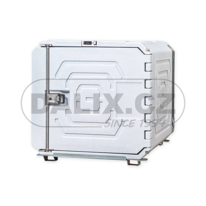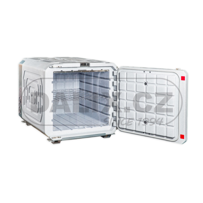 Kompresorový mobilní chladicí box, který má velice robustní konstrukci. Je vyroben z odstředivě odlévaného polyetylenu a PUR izolace. Box je osazen hermeticky uzavřeným kompresorem Danfoss BD80 s integrovanou řídící jednotkou a ochranou baterie proti vybití. Digitálním termostatem lze variabilně nastavovat a sledovat teplotu uvnitř boxu. Box odpovídá standardům HACCP pro přepravu potravin. Povrch boxu je hladký, zaoblený a lehce udržovatelný.