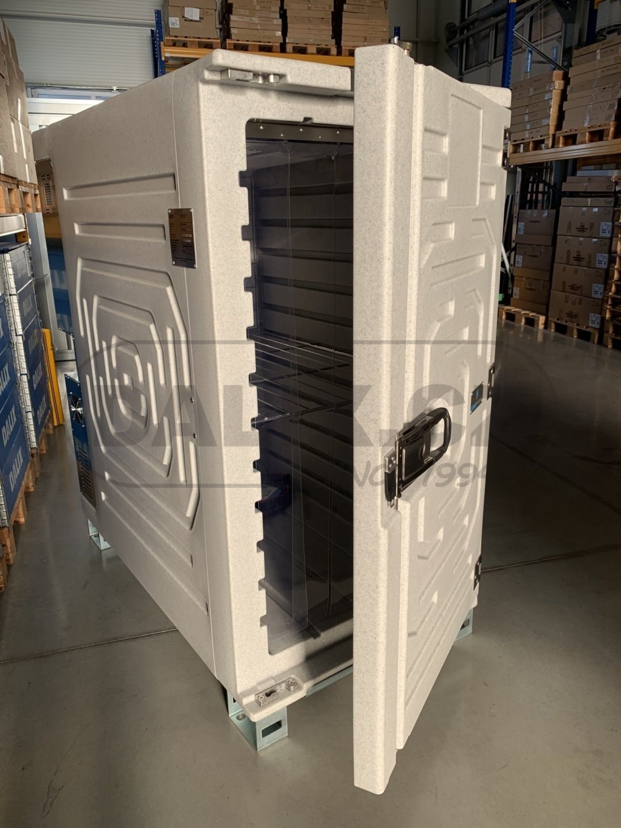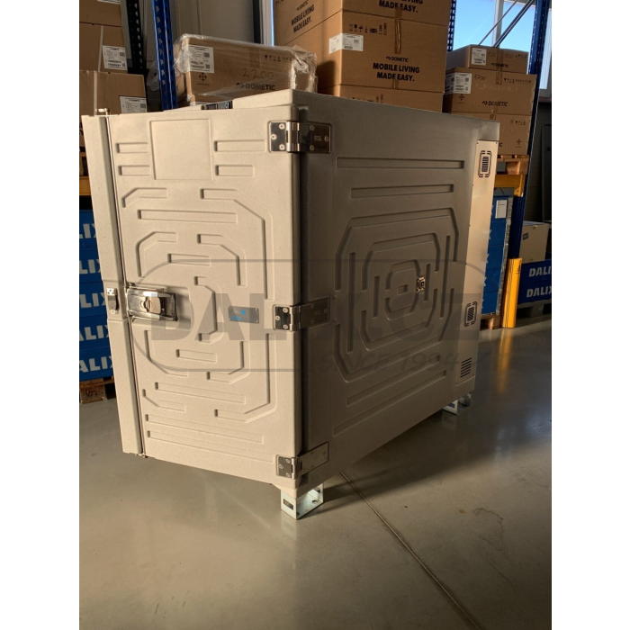 Kompresorový mobilní mrazicí box, který má velice robustní konstrukci. Je vyroben z odstředivě odlévaného polyetylenu a PUR izolace a vnějších rozměrů odpovídajících EUR paletě. Box je osazen hermeticky uzavřeným kompresorem Danfoss BD220CL s integrovanou řídící jednotkou a ochranou baterie proti vybití. Chladicí jednotka pro profeaionální použití ve vozidlech s nízkou spotřebou odolává vibracím a okolním teplotám od -20°C do +50°C. Digitálním termostatem lze variabilně nastavovat a sledovat teplotu uvnitř boxu. Box odpovídá standardům HACCP pro přepravu potravin. Povrch boxu je hladký, zaoblený a lehce udržovatelný.