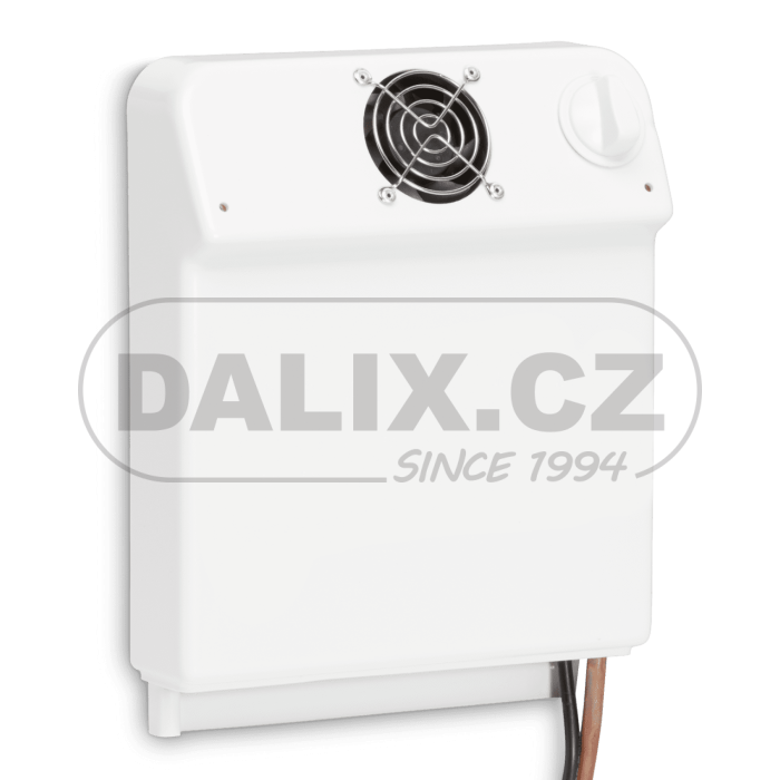 Výparník pro sérii kompresorových sestav 80, výparník zvlášť vhodný pro velké objemy a vysoké teplotní rozdíly, vysoce výkonný cirkulační výparník, bílý plastový kryt s integrovaným ventilátorem a termostatem, flexibilní spojovací vedení (cca. 2,5 m) zakončené protikusem k rychlospojce kompresoru.