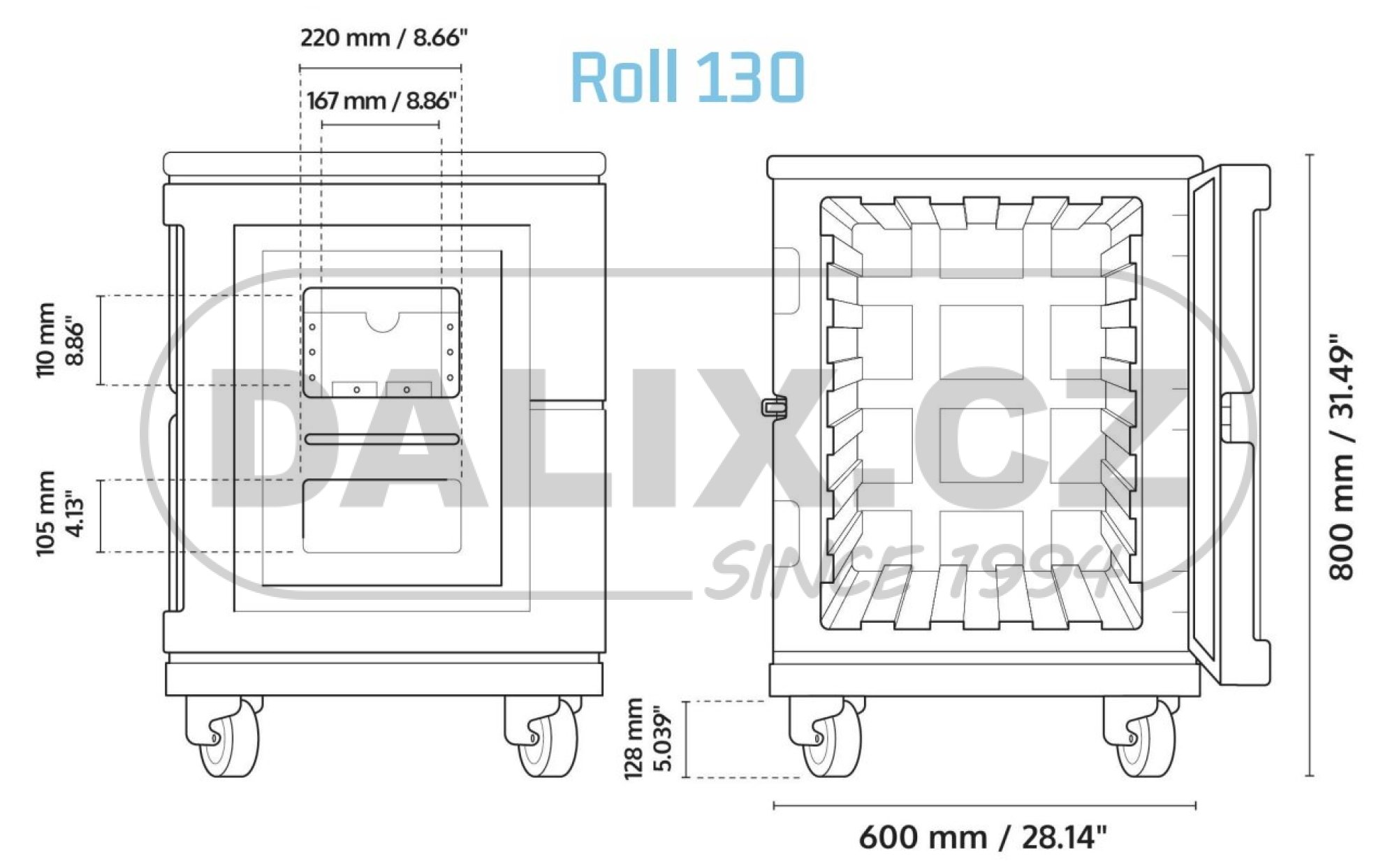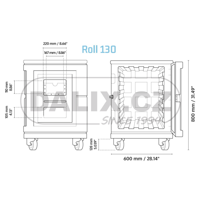 - Rozměry Roll izolovaných kontejnerů musí odpovídat logistickým standardům. Pokud zákazník pracuje s paletami, rychlost naplnění vozidla se optimalizuje pomocí kontejnerů s paletovými nebo půlpaletovými základnami.