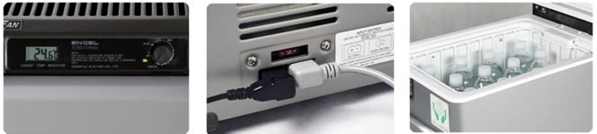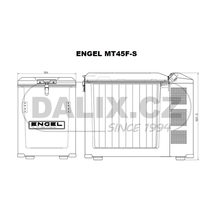 Kompresorová autolednička/automraznička ENGEL MT45F-S má hermeticky uzavřený Swingkompresor Sawafuji s integrovanou řídící jednotkou, která zajišťuje plynulý rozběh kompresoru bez startovacích špiček a rázů. Nezávislost kompresoru na poloze - plný výkon lednice až do náklonu 60 stupňů. Lednice má plynulou regulaci teploty otočným termostatem. Výparník je uložen po celém vnitřním obvodu lednice a není integrován do boxu. Lednice je vybavena drátěným košem, šroubovatelnými madly a dvěma kabely na připojení ve vozidle s palubním napětím 12V nebo 24V a k hlavnímu síťovému napětí 230V. Uzávěr a panty jsou kovové.