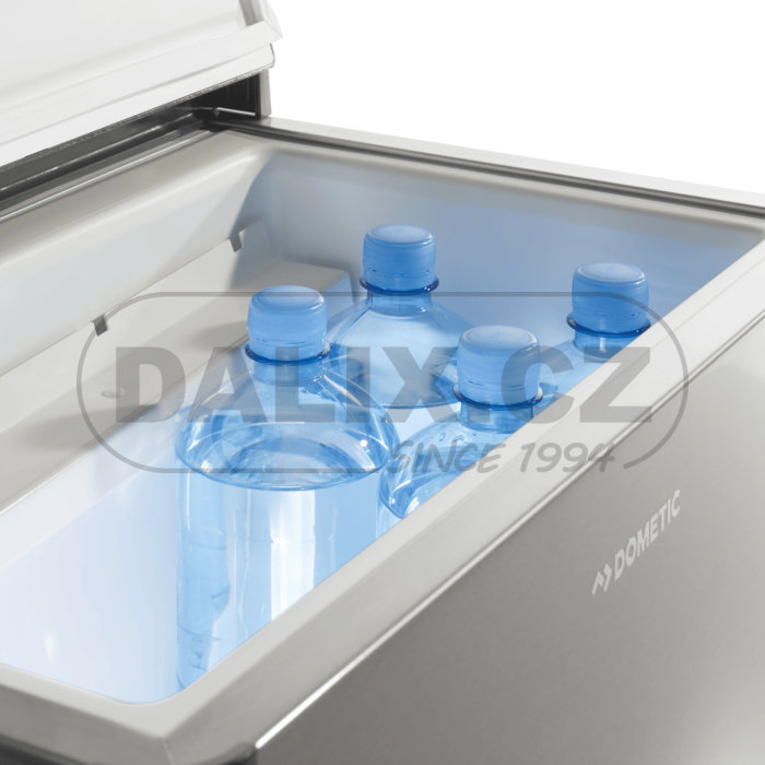 Mobilní absorpční chladnička Dometic ACX je nejúčinnější typ ve své kategorii. Předností ledničky jsou 3 volitelné zdroje energie (plyn, 12V nebo 230V) a tichý chod. Zabudovaný piezo zapalovač. Plynový ventil s hlídačem plamene. Termostatická regulace při provozu na 230V AC. Min/Max regulace při provozu na plyn. Box se zapuštěnými madly ke snadné manipulaci je vybaven rovným, hermeticky těsněným víkem.