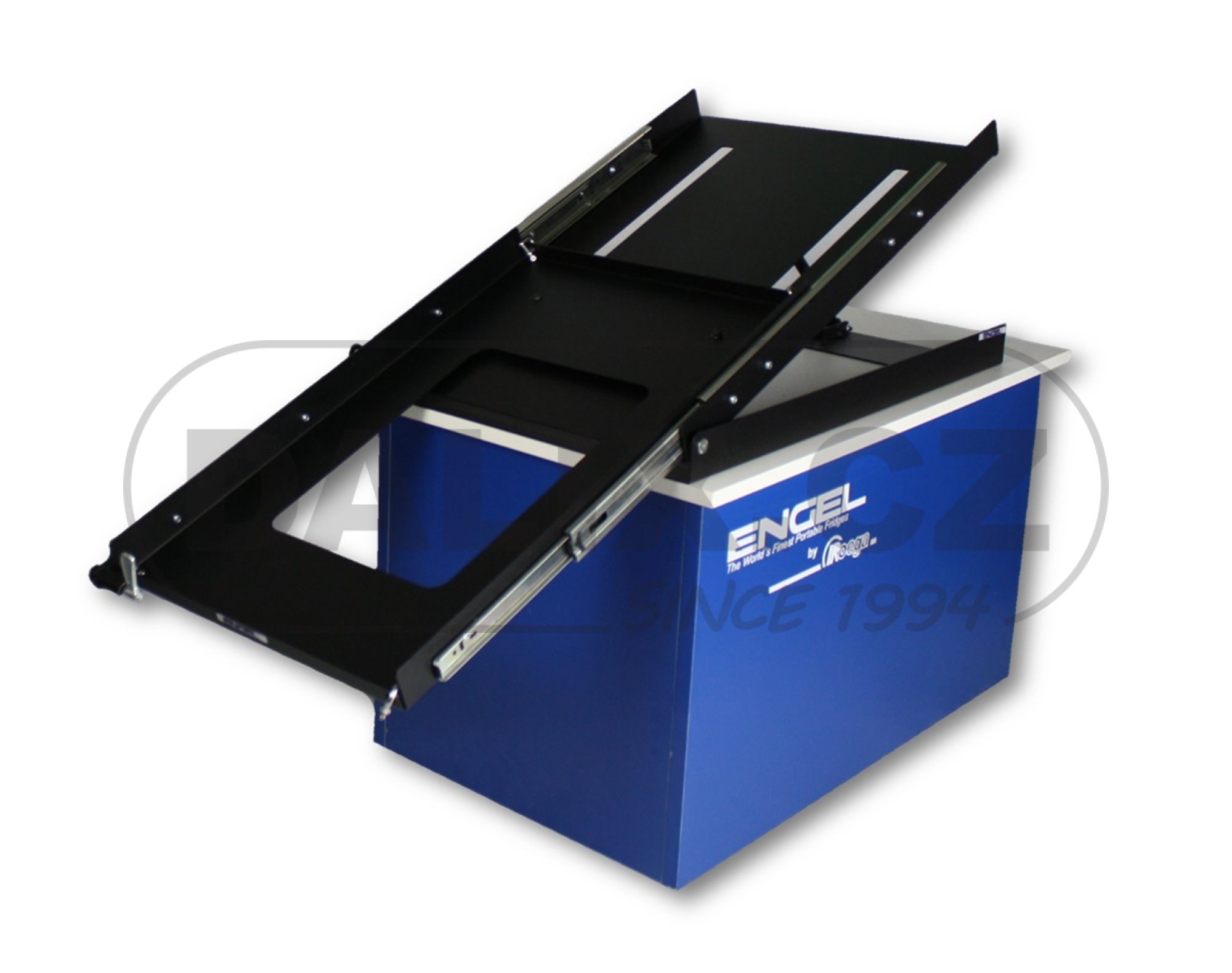 ENGEL slide heavy duty upevňovací sada je vybavena kvalitním pojezdovým mechanismem a teleskopickým tlumičem pro plynulé vyklápění základové desky . Základová deska je jištěna proti nechtěnému vysunutí robustní mechanickou západkou, přičemž základová deska je uložena na gumových dorazech.Celá sestava s lednicí je velmi stabilní a odolná mechanickým rázům a náklonům. Systém upevnění je s oblibou využíván ve vozidlech off road, vojenských speciálech apod.